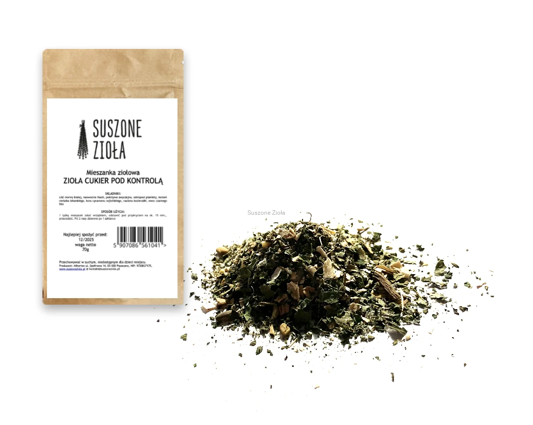 Autorska mieszanka ziół, która może pomóc w regulowaniu poziomu glukozy i insuliny we krwi.
