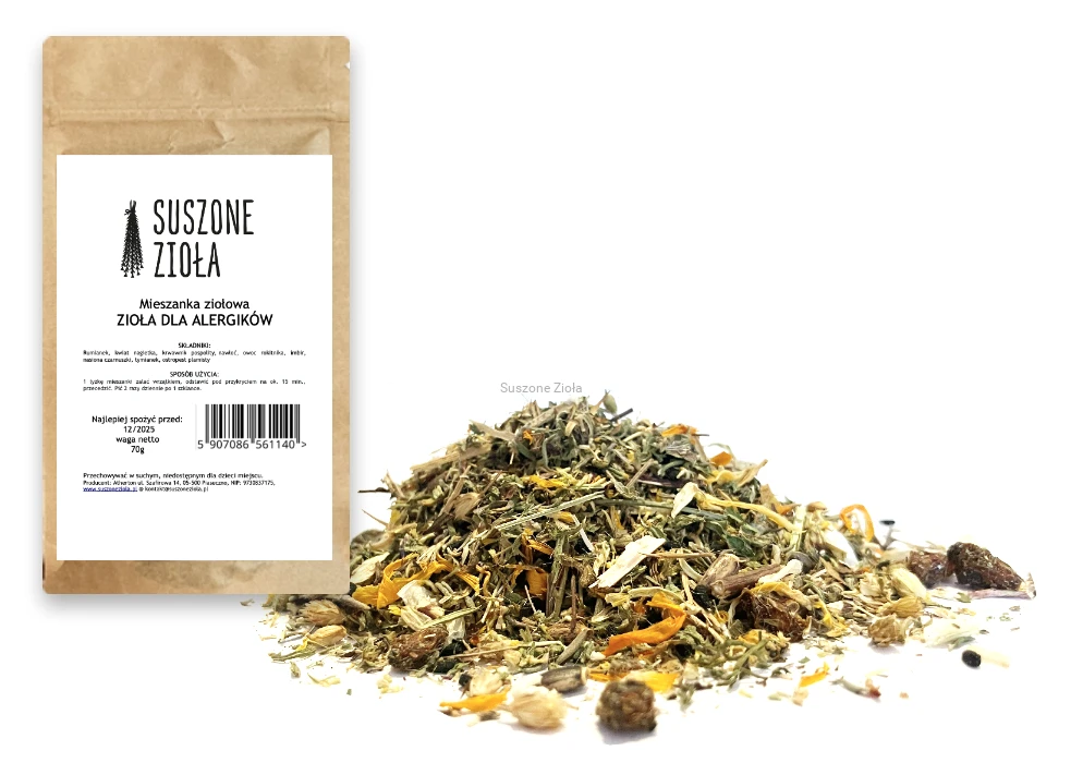 Ta mieszanka powstała z myślą o wszystkich osobach, dla których wiosna kojarzy się przede wszystkim z uciążliwym katarem siennym, trudnościami w oddychaniu, zaczerwienieniem i łzawieniem oczu, czyli objawami alergii wziewnych. Surowce roślinne w mieszance mogą stanowić uzupełnienie terapii, gdyż są to naturalne środki przeciwhistaminowe. Mogą wzmacniać tkanki i narządy organizmu, poprawiając odporność i ogólny stan zdrowia. Przede wszystkim jednak, zawarte w nich substancje mogą pomóc zniwelować towarzyszące alergiom uciążliwe objawy - katar z uczuciem zatkania nosa, napady kichania, zapalenie spojówek czy suchy kaszel.