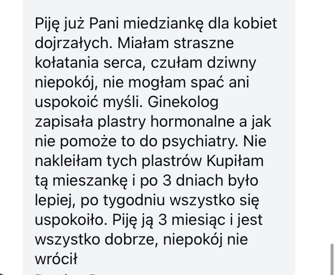 Autorska mieszanka ziół, która powstała z myślą o dojrzałych kobietach, doświadczających uciążliwych dla przekwitania symptomów - wahań nastroju, uderzeń gorąca czy zaburzeń pamięci i koncentracji. Składniki mieszanki mogą poprawić nastrój, zredukować napięcie nerwowe, zwalczyć bezsenność. Mieszankę uzupełniłam o owoc czarnego bzu, który stanowi bogactwo witaminy C - poziom tej witaminy w ciele kobiety w okresie przekwitania szybko bowiem spada.