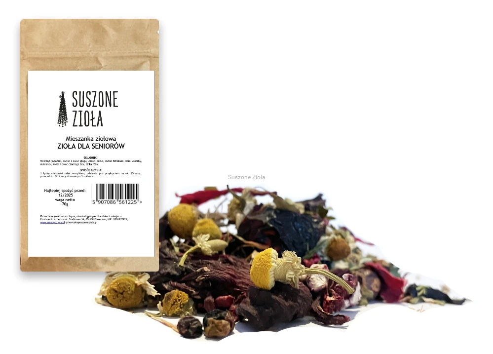 Mieszanka ziół przygotowana specjalnie z myślą o osobach starszych i towarzyszących im najczęściej dolegliwościach. Znajdziemy w niej m.in. kwiat i owoc głogu, które wspierają prawidłową pracę serca, miłorząb japoński (poprawiający pamięć i koncentrację) oraz działającą przeciwbólowo i przeciwzapalnie korę wierzby oraz czarci pazur. Regularne picie naszej mieszanki wesprze prawidłową pracę organów wewnętrznych, doda sił witalnych i poprawi samopoczucie osób starszych.