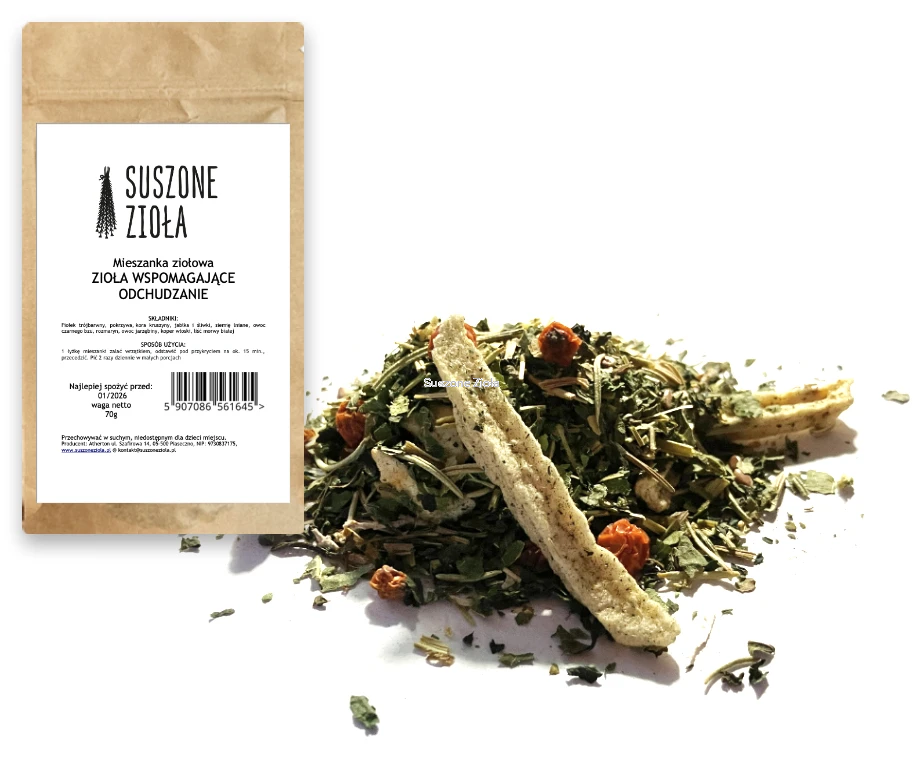 Autorska mieszanka dedykowana osobom, które zmagają się z problemem nadprogramowych kilogramów. Zawarte w niej substancje roślinne mogą zmniejszyć łaknienie, powodując uczucie sytości. Ponadto wspomogą w hamowaniu apetyt na słodycze, poprawiają trawienie, zwiększają wydzielanie soku żołądkowego i żółci oraz przeciwdziałają wzdęciom.